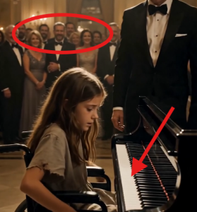 Slowly, almost as if pulled by something beyond his control, he lowered himself onto the piano bench beside the girl. He didn’t care about appearances anymore. Didn’t care about the whispers or the shifting attention of the room.